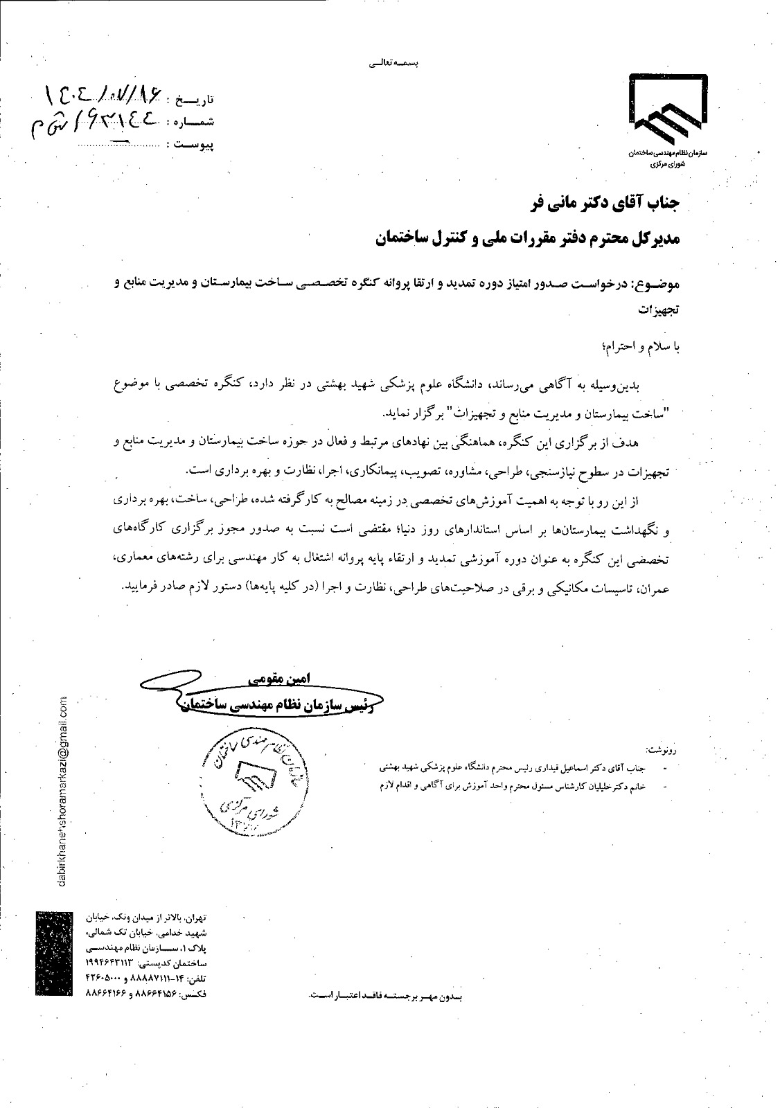 –نامه رئیس محترم سازمان نظام مهندسی ساختمان