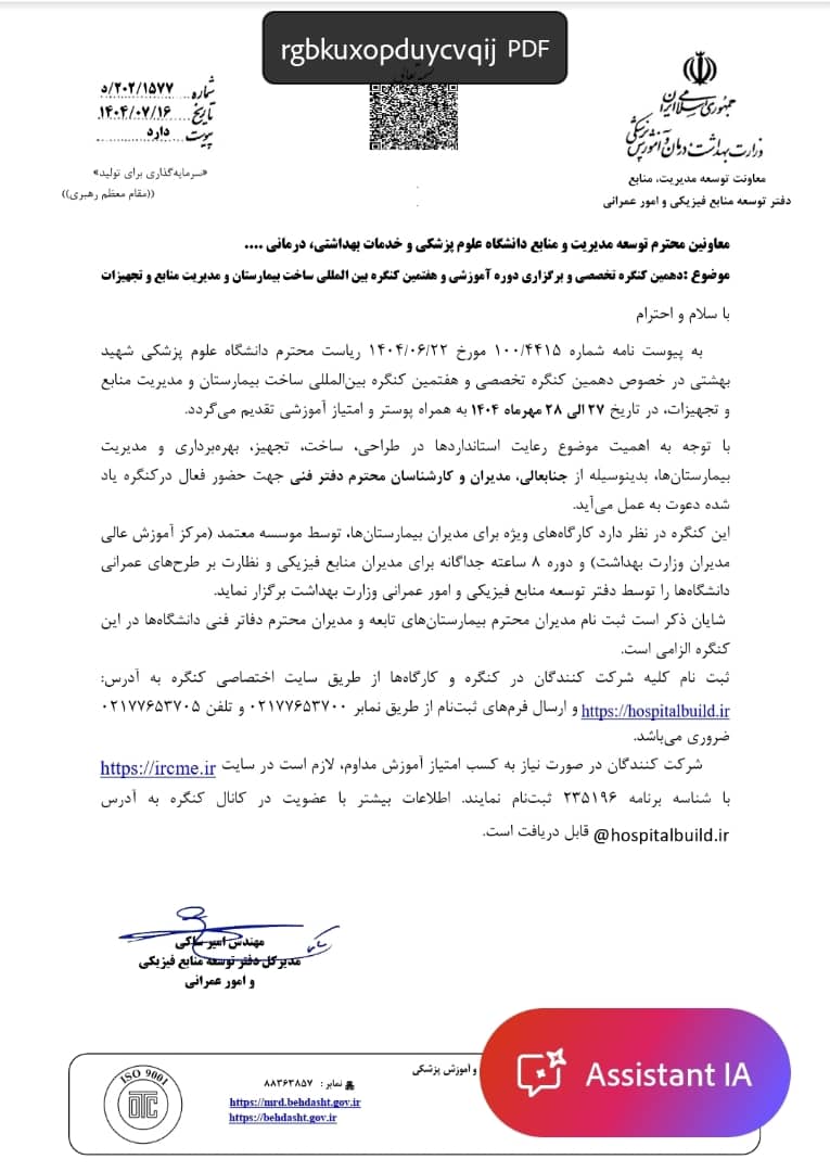 –نامه ریاست محترم دانشگاه شهید بهشتی و ریاست کنگره به دانشگاهها